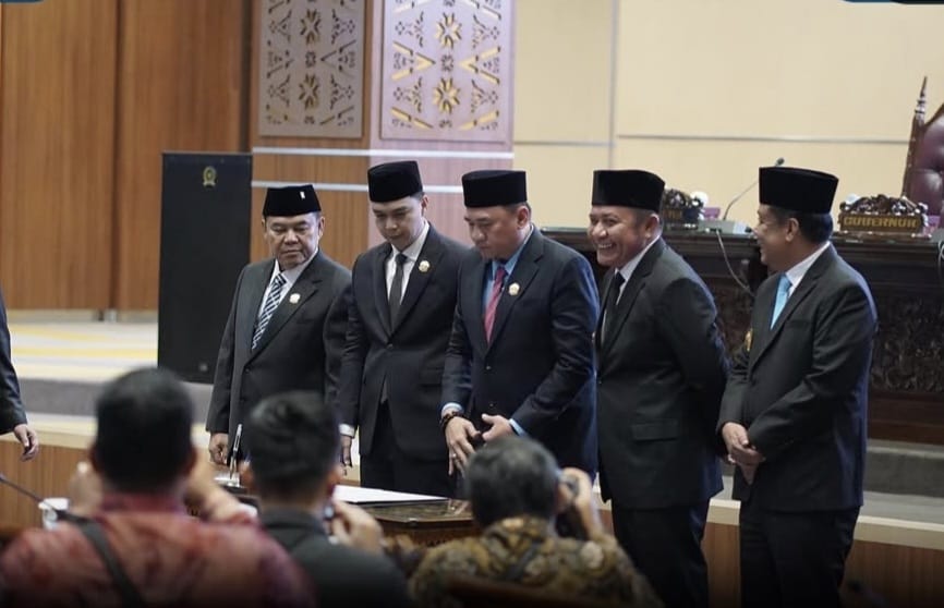 Rapat Paripurna XIII (13) DPRD Prov.Sumsel dengan Agenda Penandatanganan Nota Kesepakatan Antara Gubernur Sumsel dengan DPRD Prov.Sumsel tentang Rancangan Awal RPJMD Prov.Sumsel Tahun 2025-2029 dipimpin oleh Ketua DPRD Prov.Sumsel Andie Dinialdie, SE didampingi oleh para Wakil Ketua DPRD Prov.Sumsel; Raden Gempita, SH, H. Nopianto, S.Sos, MM, dan H.M. Ilyas Panji Alam, S.E., S.H., M.M, dihadiri oleh Gubernur Sumsel H. Herman Deru, SH, MM, dan Wakil Gubernur Sumsel; H.Cik Ujang, SH, Sekretaris Daerah; Drs. H. Edward Chandra, MH, Sekretaris DPRD; H. Aprizal, S.Ag, SE, M.Si, Para Kepala Dinas serta perwakilan Organisasi Perangkat Daerah (OPD) di lingkungan Pemprov Sumsel serta tamu undangan lainnya.