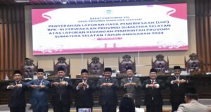 VENEWS,- Dewan Perwakilan Rakyat Daerah (DPRD) Provinsi Sumatera Selatan (Sumsel) menggelar rapat Paripurna XIV di Ruang Rapat Paripurna DPRD Sumsel,Rabu 4 Juni 2025, dengan agenda Penyerahan Laporan Hasil Pemeriksaan (LHP) atas laporan keuangan Pemerintah Provinsi Sumsel. Rapat paripurna dipimpin oleh Ketua DPRD Sumsel, Andie Dinialdie, SE, MM.