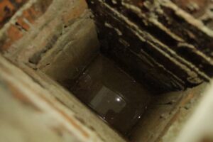 Di dalam ruang salat, tepatnya di shaf keempat sebelah kiri, terdapat sebuah lubang persegi berukuran sekitar 45 cm dan sedalam pinggang orang dewasa