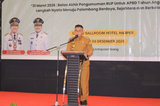Sekretaris Daerah (Sekda) Kota Palembang, Aprizal Hasyim, membuka kegiatan tersebut yang mengusung tema “31 Maret 2026: Batas Akhir Pengumuman RUP untuk APBD TA 2026, Langkah Nyata Menuju Palembang Berdaya, Sejahtera, dan Berkelanjutan.”