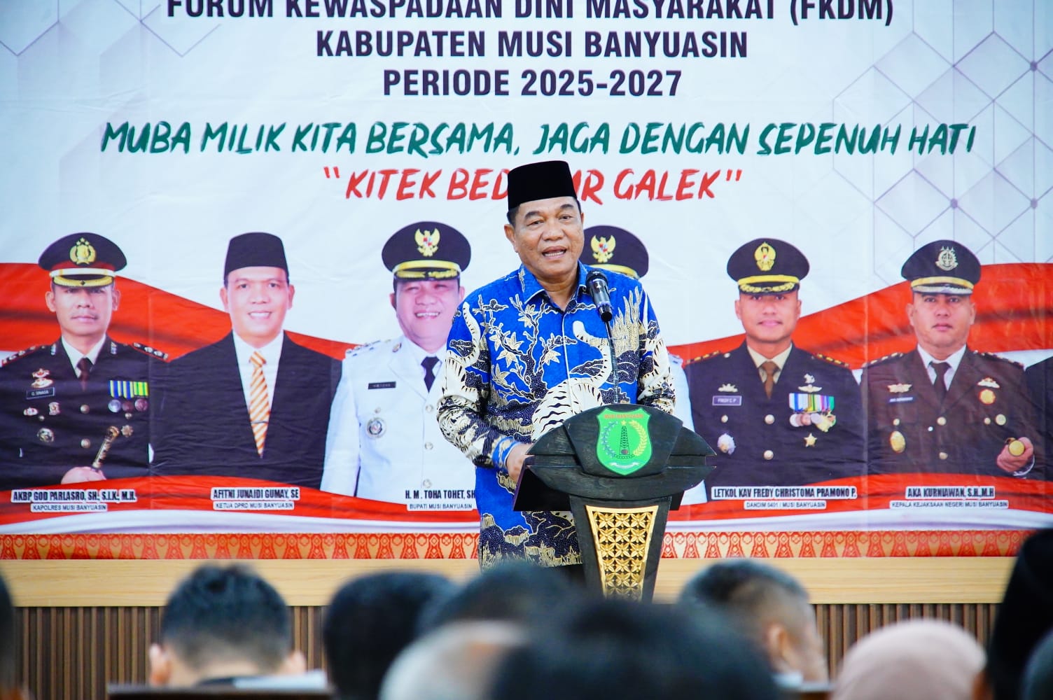Bupati Muba H M Toha Tohet SH hadir langsung sekaligus melantik para pengurus forum yang memiliki peran strategis dalam menjaga kerukunan masyarakat dan stabilitas daerah tersebut.