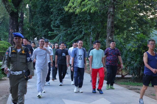 Mereka tampak antusias menikmati udara pagi yang segar sambil menyusuri jalur hijau di sekitar Kambang Iwak. Jalan santai ini bukan hanya menjadi ajang olahraga, tetapi juga mempererat sinergi antarinstansi dalam suasana informal dan santai.