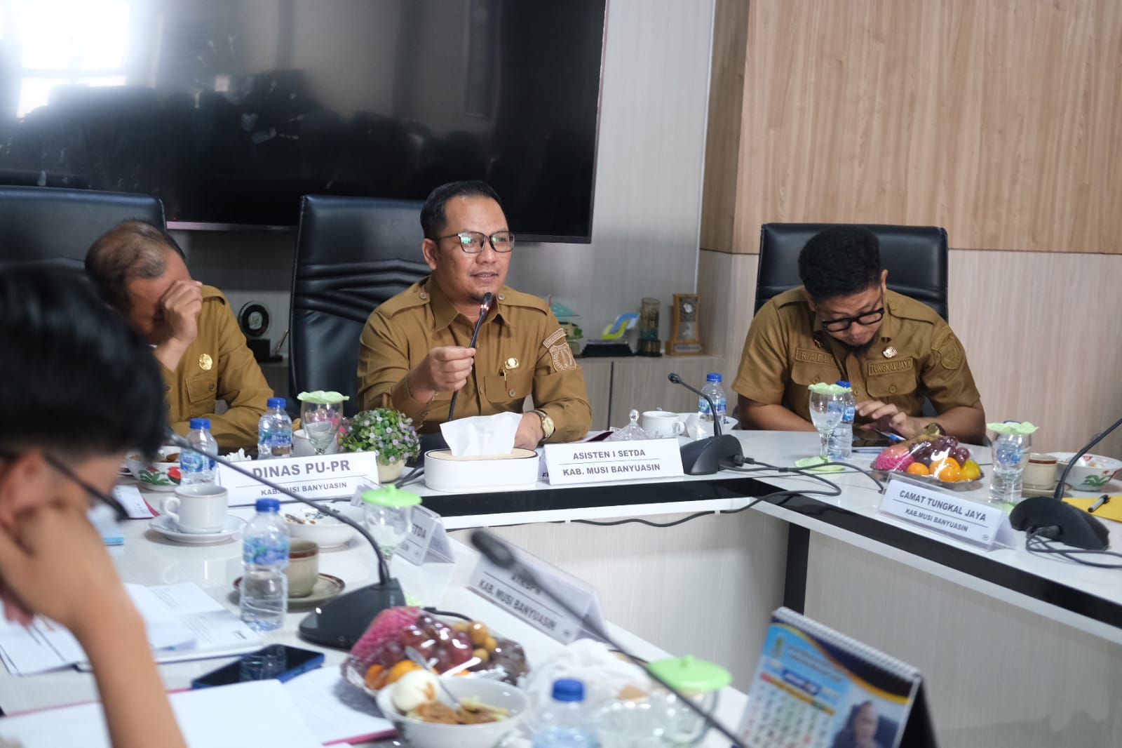 VENEWS, — Asisten I Sekretariat Daerah Kabupaten Musi Banyuasin (Muba) Ardiansyah SE MM PhD CMA menghadiri Rapat Dengar Pendapat Umum (RDPU) Komisi III DPRD Kabupaten Musi Banyuasin terkait permasalahan lahan yang terdampak pembangunan Jalan Tol Trans Sumatera di Desa Sinar Tungkal, Kecamatan Tungkal Jaya.