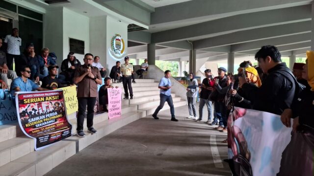 Untuk segera merealisasikan pengesahan Perda Pemajuan Kesenian, DKP bersama para seniman dan musisi yang tergabung dalam Aliansi Seniman Palembang menggelar aksi damai di depan gedung DPRD Palembang, Rabu (21/1/2026) pagi.