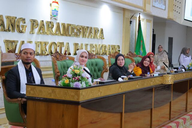 VENEWS – Dharma Wanita Persatuan (DWP) Kota Palembang menyelenggarakan kegiatan silaturahmi dan pertemuan rutin yang dirangkaikan dengan peringatan Isra Mi’raj Nabi Muhammad SAW 1447 Hijriah. Acara yang berlangsung khidmat ini digelar di Ruang Rapat Parameswara Rabu, (21/01/ 2025).