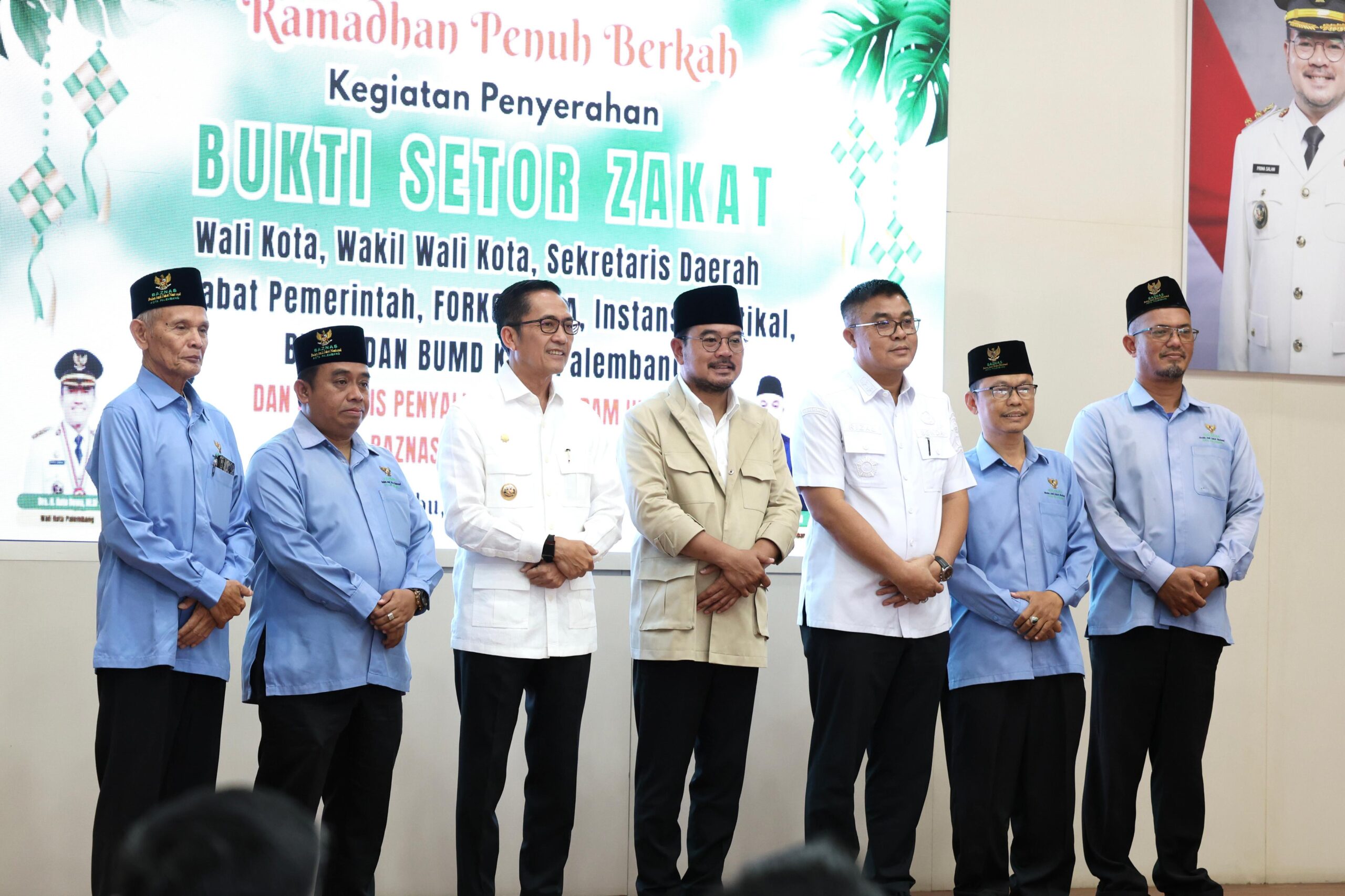 VENEWS Wali Kota Palembang Ratu Dewa bersama Wakil Wali Kota dan Sekretaris Daerah menghadiri kegiatan Bukti Setor Pembayaran Zakat Maal yang digelar Badan Amil Zakat Nasional (Baznas) Kota Palembang dalam rangkaian program Gerakan Ramadan Berkah Menguatkan Indonesia.