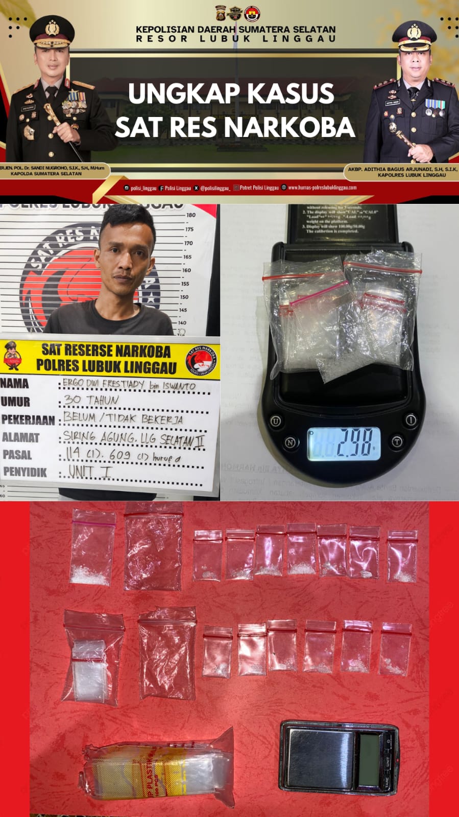 VENEWS— Komitmen Polda Sumatera Selatan dalam memberantas peredaran narkotika kembali membuahkan hasil. Seorang pria berlatar belakang pendidikan sarjana ditangkap polisi setelah diduga menjadi pengedar sabu di Kota Lubuk Linggau.
