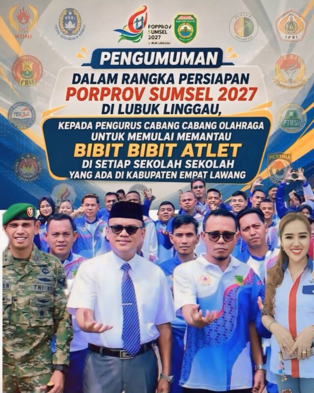 VENEWS – Jelang Pekan Olahraga Provinsi (Porprov) Sumatera Selatan 2027 di Lubuklinggau, seluruh pengurus cabang olahraga (cabor) di Kabupaten Empat Lawang diminta bergerak cepat melakukan pemantauan dan penjaringan bibit atlet.